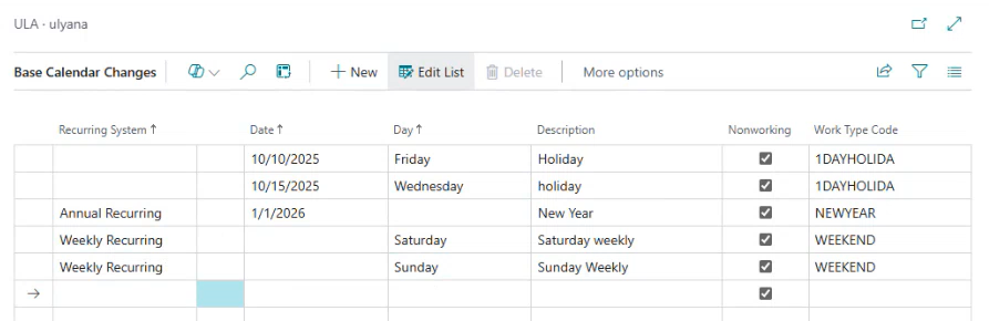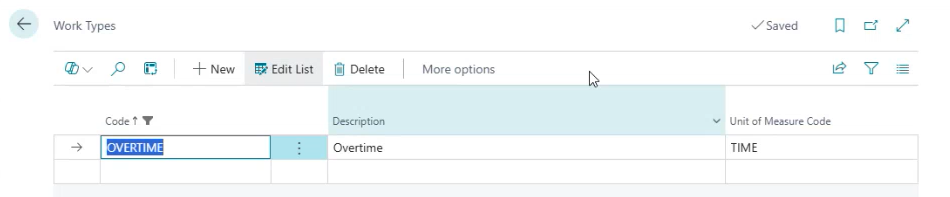 3. Create a new Work Type Code with Unit of Measure Code = TIME
