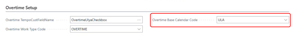 Overtime Base Calendar Code: Specifies the Base Calendar Code used to define Work Type Code for the job on holidays.